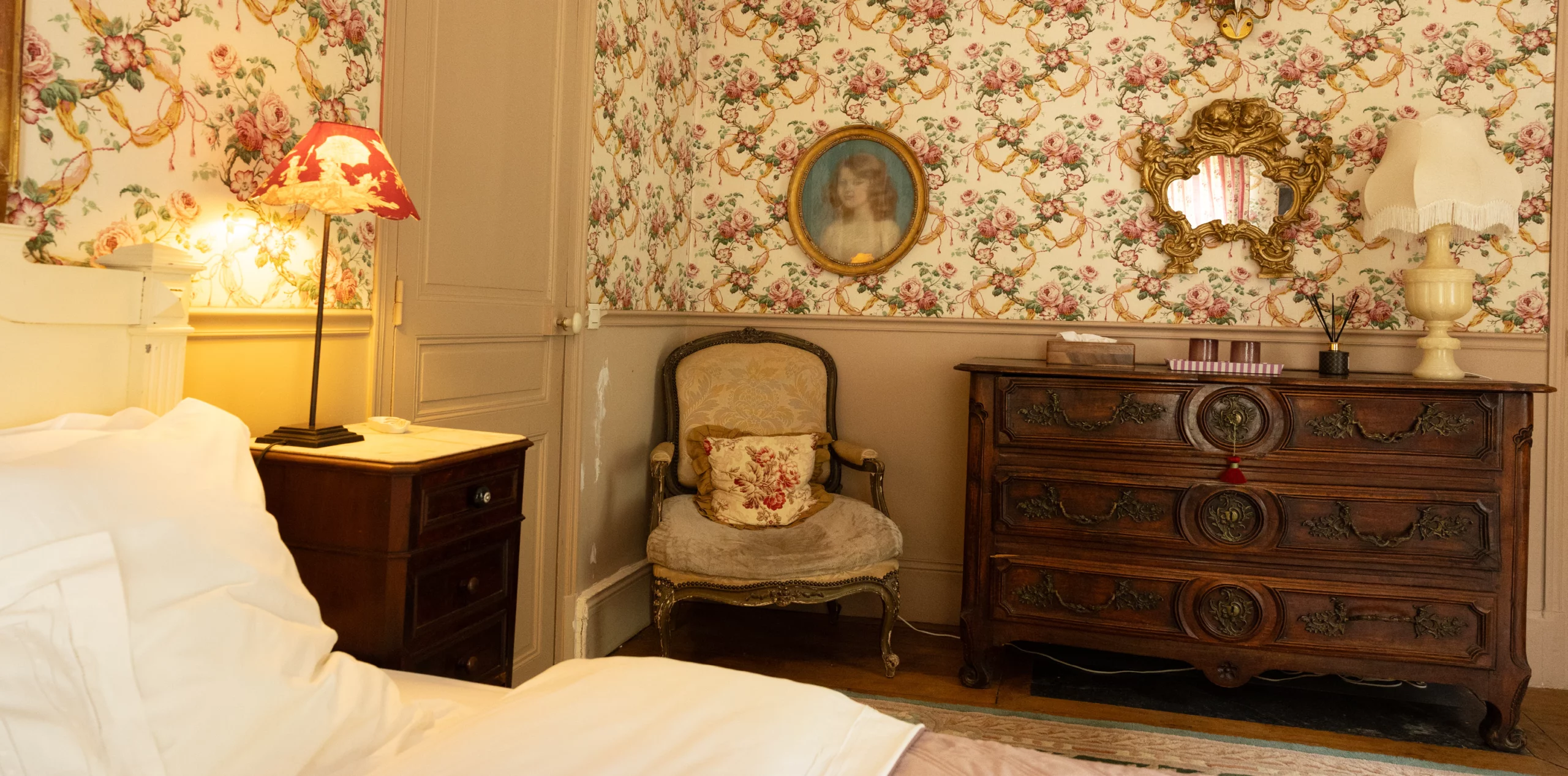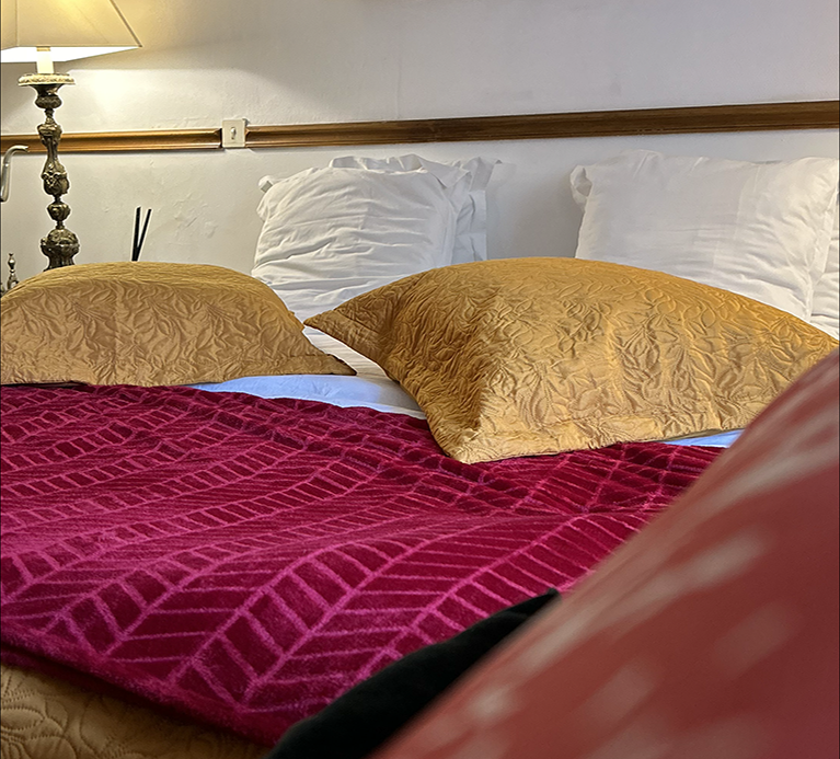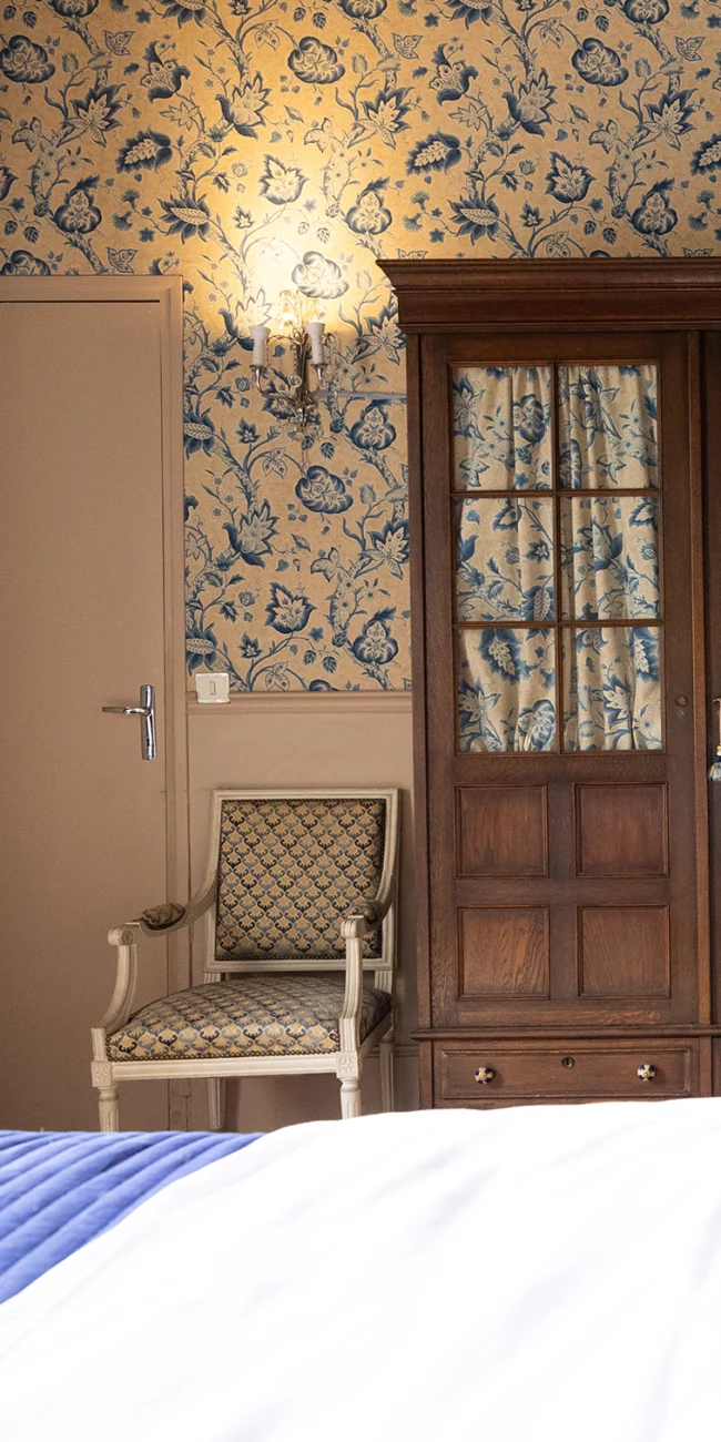 La Chambre Madame s’inspire de l’élégance intemporelle, avec ses teintes douces et son ambiance feutrée. Un grand miroir amplifie la luminosité, ajoutant une touche de majesté. Un lieu serein et raffiné, parfait pour un séjour de calme et de sophistication.
